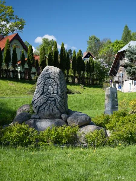 Dominantou prostoru je kamenný trůn, symbolicky věnovaný Duchu hor – mytickému ochránci Krkonoš. Stal se oblíbeným místem pro fotografování i krátké zastavení při cestě.